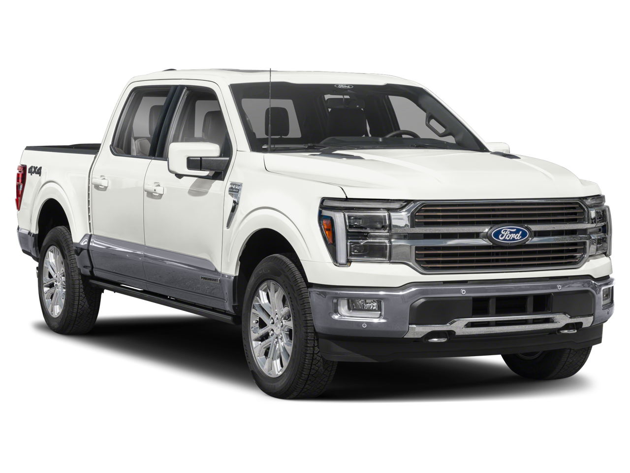 2026 Ford F-150 King Ranch Star White Metallic Tri-Coat King Ranch 3.5L PowerBoost Full-Hybrid V6 4x4 FX4 Off-Road Bodyside Decal, Auto High-beam Headlights, Bluetooth®, Dual front impact airbags, Electronic Locking with 3.55 Axle Ratio, Emergency communication system: SYNC 4 911 Assist, Equipment Group 601A High, Ford Connectivity Package (1-Year Included), Front anti-roll bar, Front fog lights, FX4 Off-Road Package, Head-Up Display, Hill Descent Control, Internet access capable: 5G Modem - Ford Connectivity Package, Iphone / Droid Compatible, King Ranch Multicontour Leather Bucket Seats, Leather, Low tire pressure warning, Memory seat, Monotube Rear Shocks, Multi-Function Steering Wheel, Navigation system: Connected Navigation, Off-Road Tuned Front Shock Absorbers, Passes NC state inspection, Pedal memory, Power driver seat, Power steering, Power windows, Power-Deployable Running Boards, Pro Power Onboard - 2KW, Radio: B&O Unleashed Sound System by Bang & Olufsen, Rearview Camera, Remote keyless entry, Rock Crawl Mode, Security system, Steering wheel memory, Steering wheel mounted audio controls, Sunroof / Moonroof, SYNC, Wheels: 20 Chrome-Like PVD.