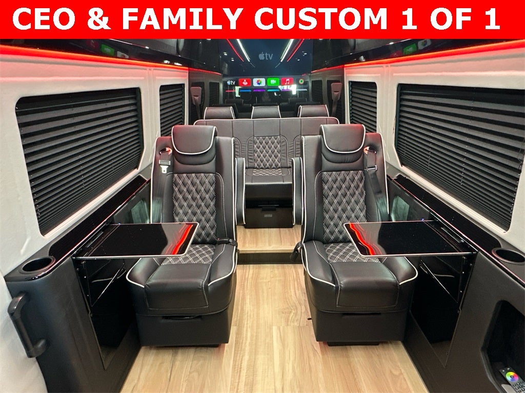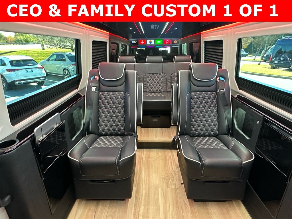 Mercedes-Benz of Atlanta Northeast 1705 Boggs Rd Duluth Georgia 30096 770.230.6783 Acoustic Package, Chrome Grille Package (Chrome Plated Radiator Grille and Radiator Grille Frame in Vehicle Color), Exterior Lighting Package (Fog Lamp w/Cornering Light Function, High Beam Assist, LED High Performance Headlamps, and Partial LED Tail Lights), MBUX Package (Instrument Panel Front-to-Rear Outlet, Pre-Installation for Navigation, and Radio: MBUX Multimedia System w/10.25 Touchscreen), Smartphone Integration Package, Parking Package w/360 Degree Camera, 115V Socket, 3.923 Axle Ratio, 4-Wheel Disc Brakes, 5 Speakers, 5.5J x 16 Steel Wheels, ABS brakes, Additional Battery Cutoff Relay, Air Conditioning, AM/FM radio, Armrest for Driver's Seat, Armrest for Front Passenger Seat, Auxiliary Fuel Sending Unit w/Fuel Tap, B-Pillar Assist Handle, Blind Spot Assist, Bodyside moldings, Brake assist, Bucket Seats, Driver door bin, Driver's Seat Mounted Armrest, Dual front impact airbags, Dual front side impact airbags, Dual rear wheels, Electric Sliding Door Right, Electrically Folding Exterior Mirrors, Electronic Stability Control, Emergency communication system: eCall Emergency System, Exterior Parking Camera Rear, Front anti-roll bar, Front Bucket Seats, Front Engine Bracket for Auxiliary A/C Compressor, Front wheel independent suspension, Fully automatic headlights, Heated front seats, Heated door mirrors, Heated Driver's Seat, Hinged Lid for Storage Compartment, Illuminated entry, Interior Rear View Mirror, Jet Black Painted Rims, Low tire pressure warning, Maturin Fabric Upholstery, Misfuelling Prevention for Diesel, Moving Off Information System, Occupant sensing airbag, Optional 3-Button Keys, Outside temperature display, Overhead airbag, Overhead console, Painted Metallic Front & Rear Bumpers, Parametric Special Module (PSM), Passenger door bin, Passenger seat mounted armrest, Power door mirrors, Power steering, Power windows, Primed Side Moldings, Radio: Standard, Rain sensing wipers, Rear Door Windows, Rear Window Black Tinting (90%), Remote keyless entry, Seat Occupancy Sensor Driver Seat, Sideguard Assist, Speed control, Speed-sensing steering, Standard Driver Seat, Standard Front Passenger Seat, Steering wheel mounted audio controls, Tachometer, Tilt steering wheel, Traction control, and Variably intermittent wipers. Wondering how to build your own Custom Luxury Sprinter van or 15 passenger Luxury shuttle Sprinter at a great price? Sprinter Jack can help you build your new dream Mercedes-Benz Sprinter luxury CEO or high capacity shuttle at a great price. Looking to have an amazing sprinter for family and personal transport? Expand your fleet or upgrade your current luxury offering? I'm Sprinter Jack, and I specialize in high-end custom Sprinter builds tailored to fit the needs of limo operators, corporate fleets, VIP clients, discerning families and luxury transportation services., Acoustic Package, Chrome Grille Package, Chrome Plated Radiator Grille, Exterior Lighting Package, Fog Lamp w/Cornering Light Function, High Beam Assist, Instrument Panel Front-to-Rear Outlet, LED High Performance Headlamps, MBUX Package, Partial LED Tail Lights, Pre-Installation for Navigation, Radiator Grille Frame in Vehicle Color, Radio: MBUX Multimedia System w/10.25 Touchscreen, Smartphone Integration Package.